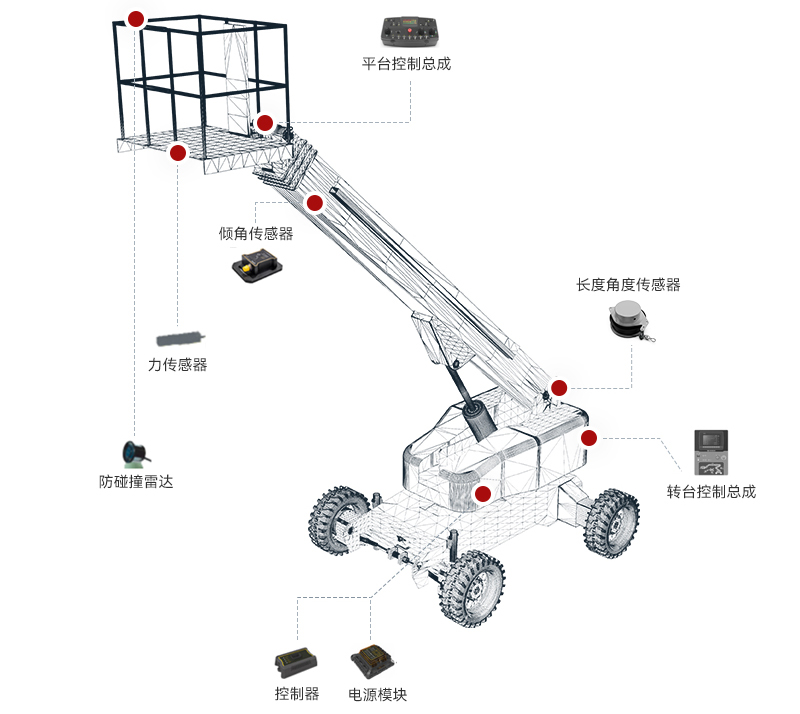 YABO鸭脖直臂式高空作业平台配备智能控制技术和安全监测装置,通过采集AI模拟量、DI数字量并结合运动算法后,对PWM信号、DO信号进行自动化控制,从而在安全的范围内实现各种自动功能,确保作业平台在高度作业中的精确定位和安全稳固。适用于高层建筑、大型设施维护等场景。